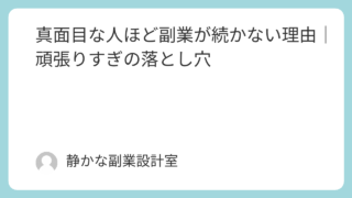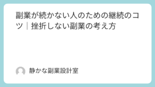 副業を始めてみたものの、気づけばやめてしまった。そんな経験をした人は少なくありません。副業は「始めること」よりも「続けること」の方が難しいと言われています。かく言う私も、何度も挫折した経験があります。半年を過ぎた頃からだんだんつらくなってき...