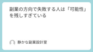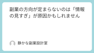 副業を始めたいと思っても、・何をやればいいのか分からない・選択肢が多すぎて決められない・決めても不安になってしまうこのように、方向が定まらない状態で止まってしまう人は少なくありません。多くの場合、その原因は、情報不足努力不足能力不足ではあり...