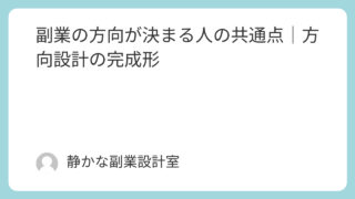 副業を始めたいと思っても、・何をやればいいか分からない・方向が決まらない・選んでも不安になってしまうという状態で止まってしまう人は少なくありません。一方で、迷いながらも方向を決め、行動を続けている人もいます。この違いは、才能や知識の差ではな...