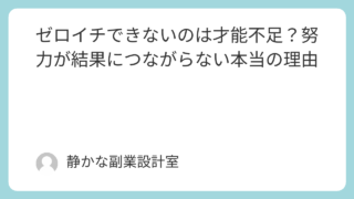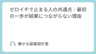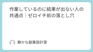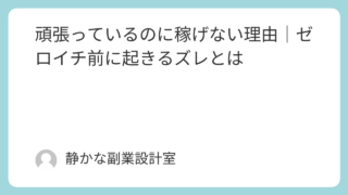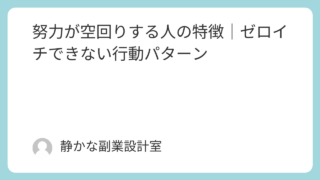 副業や発信に取り組んでいて、・時間はしっかり使っている・努力も続けている・やる気もあるそれでも、・成果が出ない・状況が変わらない・頑張りが報われないそんな状態に悩んでいませんか。このようなとき、多くの人は、「努力が足りない」「もっと頑張る必...