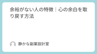 ・このままの働き方で大丈夫だろうか・頑張っているのに、余裕がなくなってきた・無理を続けている気がするそんな不安を感じることはありませんか。多くの人は、もっと努力しなければもっと成長しなければと考えます。しかし、人生が苦しくなる原因の多くは、...