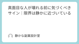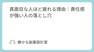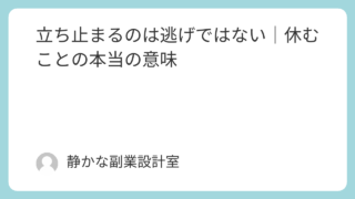 ・少し休みたいと思うけれど、不安になる・立ち止まったら遅れてしまう気がする・休むことに罪悪感があるそんな気持ちを抱えていませんか。真面目で責任感が強い人ほど、止まる=逃げ休む=甘えと考えてしまいがちです。しかし実際には、立ち止まることは後退...