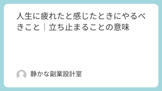 状態・人生点検 立ち止まるのは逃げではない|休むことの本当の意味