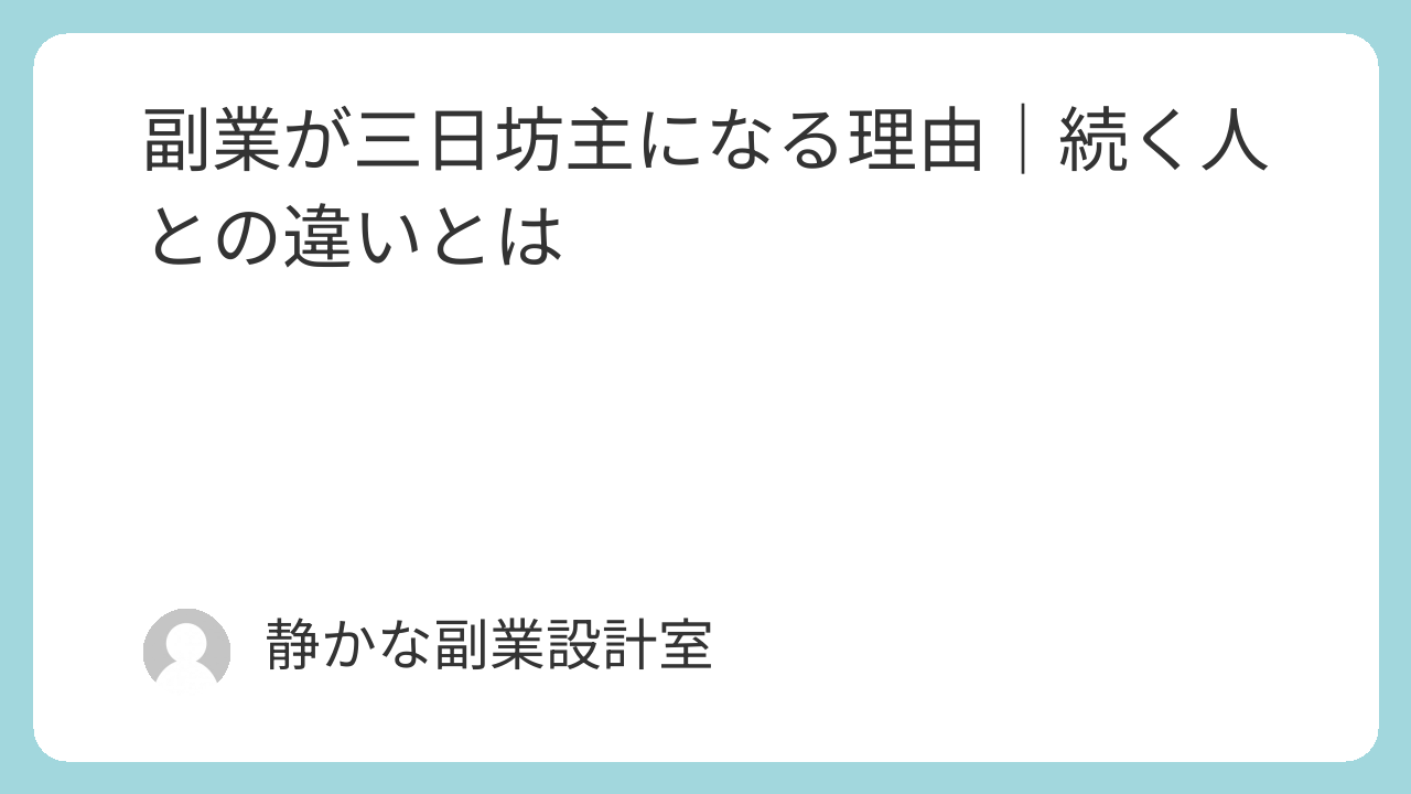 この記事では、副業が三日坊主になる理由と、続く人が最初に意識している考え方を解説します。