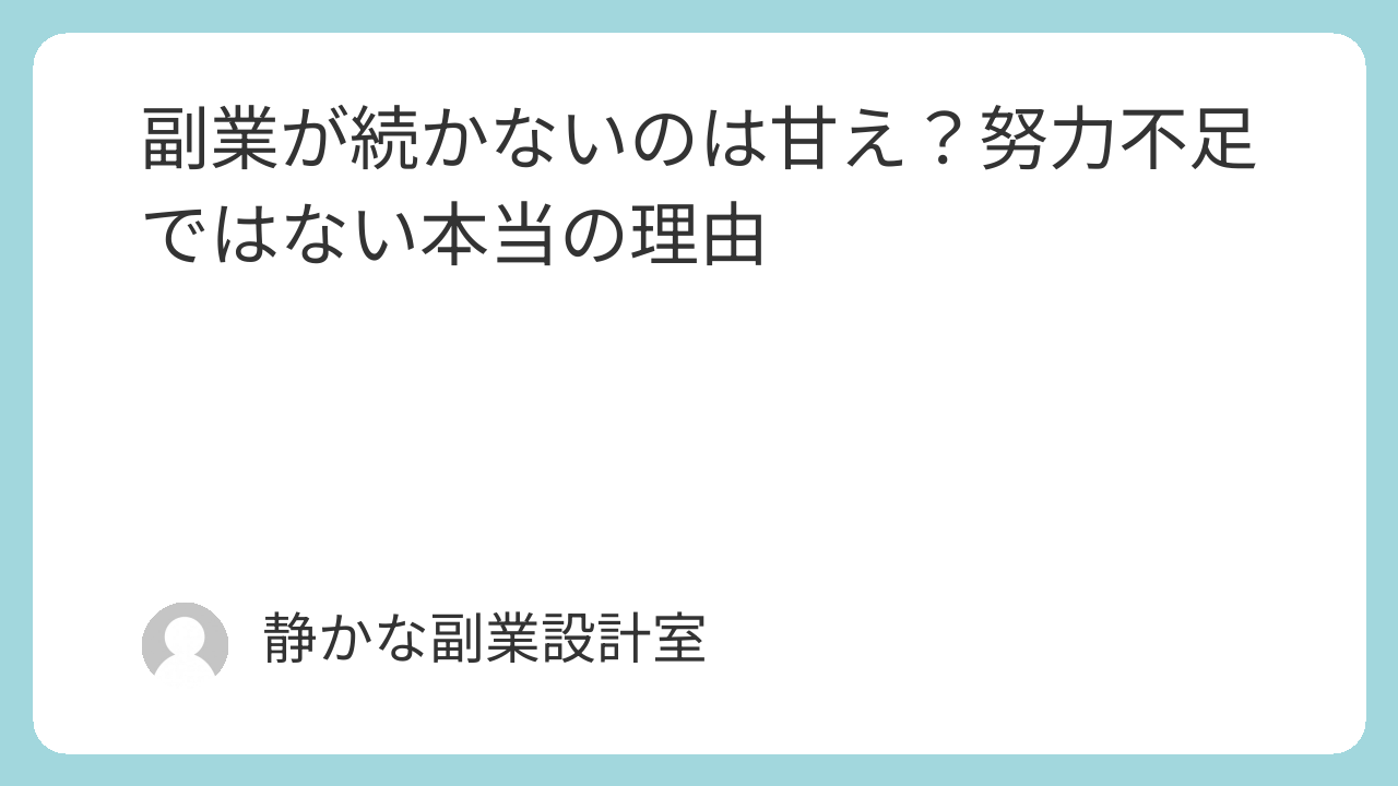 この記事では、副業が続かない本当の理由と、努力不足ではない理由を解説します。