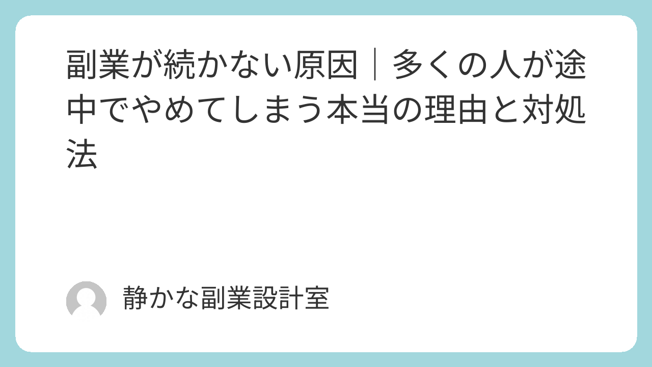 この記事では、副業が続かない原因を整理し、なぜ多くの人が途中でやめてしまうのか、そして継続するために本当に必要な考え方について解説します。