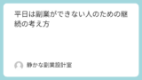 毎日少しでも、または週単位で、一定の作業量を維持することが大切です。
