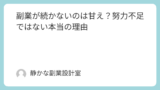 この記事では、副業で手応えを感じられなくなる理由と、継続するための考え方を解説します。