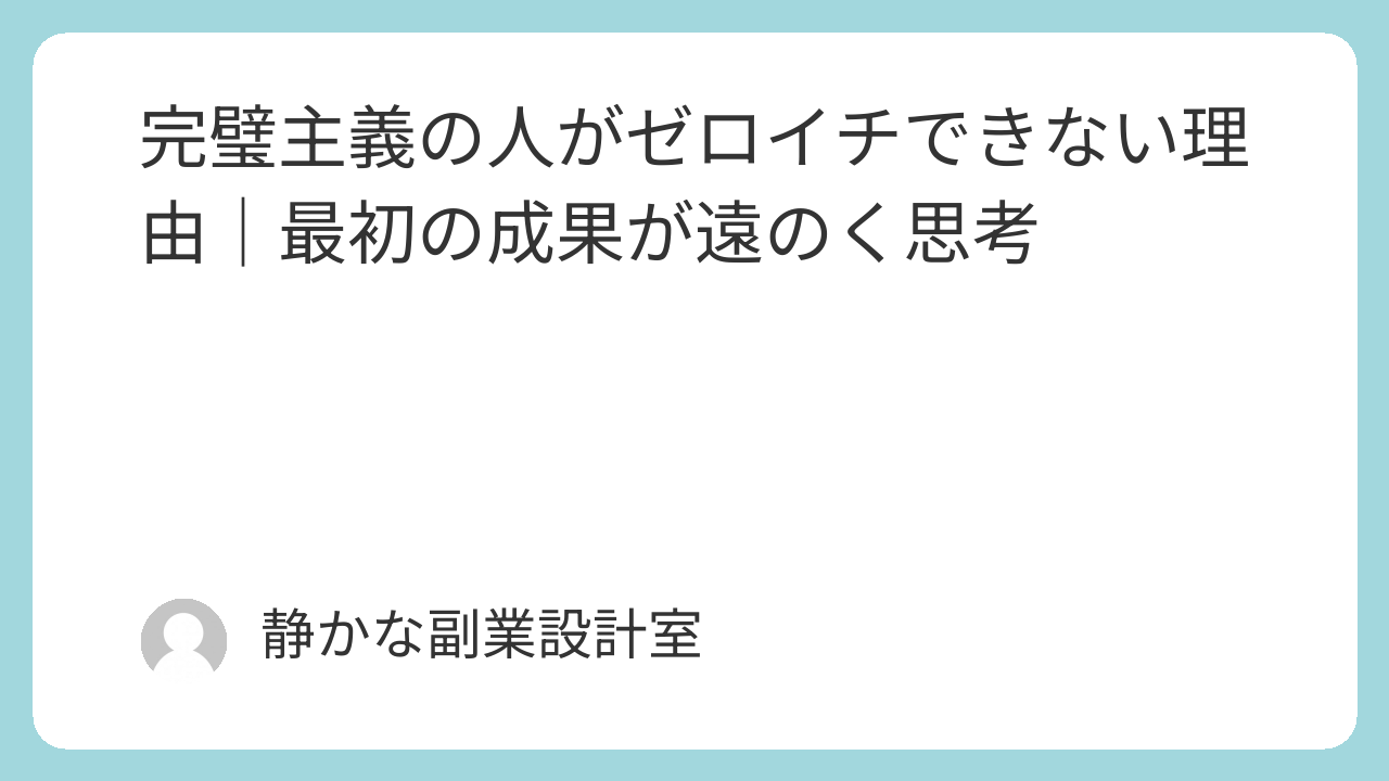 この記事では、完璧主義がゼロイチを難しくする理由と、最初の成果につながる考え方を解説します。