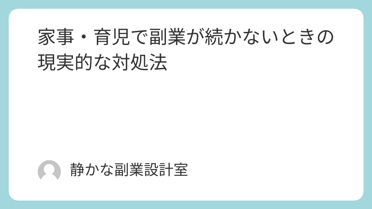 この記事では、家事・育児と両立しながら副業を続けるための、現実的な考え方と工夫を解説します。