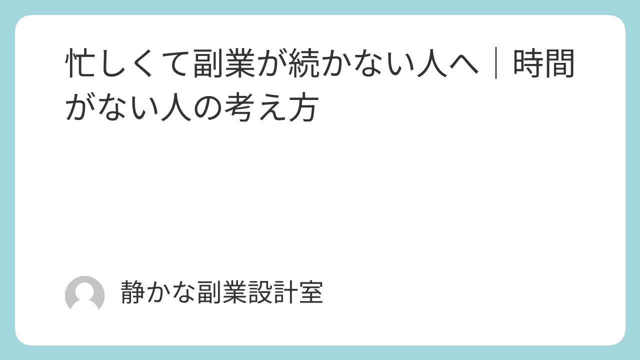 この記事では、時間がない人でも副業を続けるための現実的な考え方を解説します。