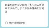 この記事では、真面目な人ほど副業が続かなくなる理由と、長く続けるための考え方を解説します。
