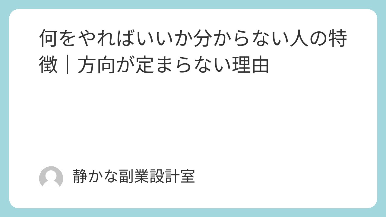この記事では、何をやればいいか分からない状態になる人の特徴と、方向を定めるための考え方を解説します。