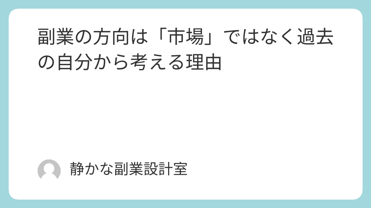 副業の方向は「市場」ではなく過去の自分から考える理由
