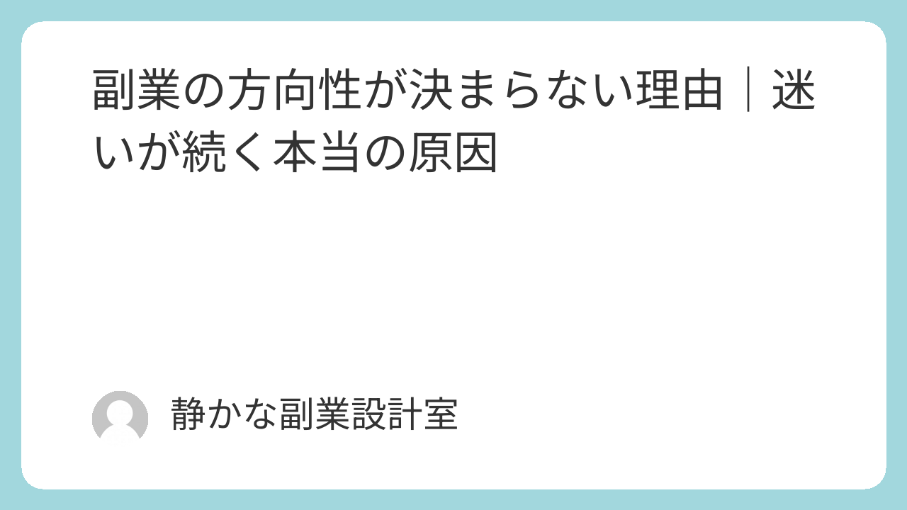 この記事では、副業の方向性が決まらない本当の理由と、迷いから抜け出すための考え方を解説します。