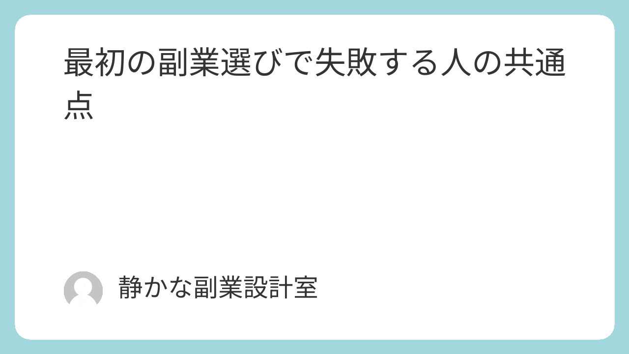 この記事では、最初の副業選びで失敗する人の共通点と、方向を間違えないための考え方を解説します。