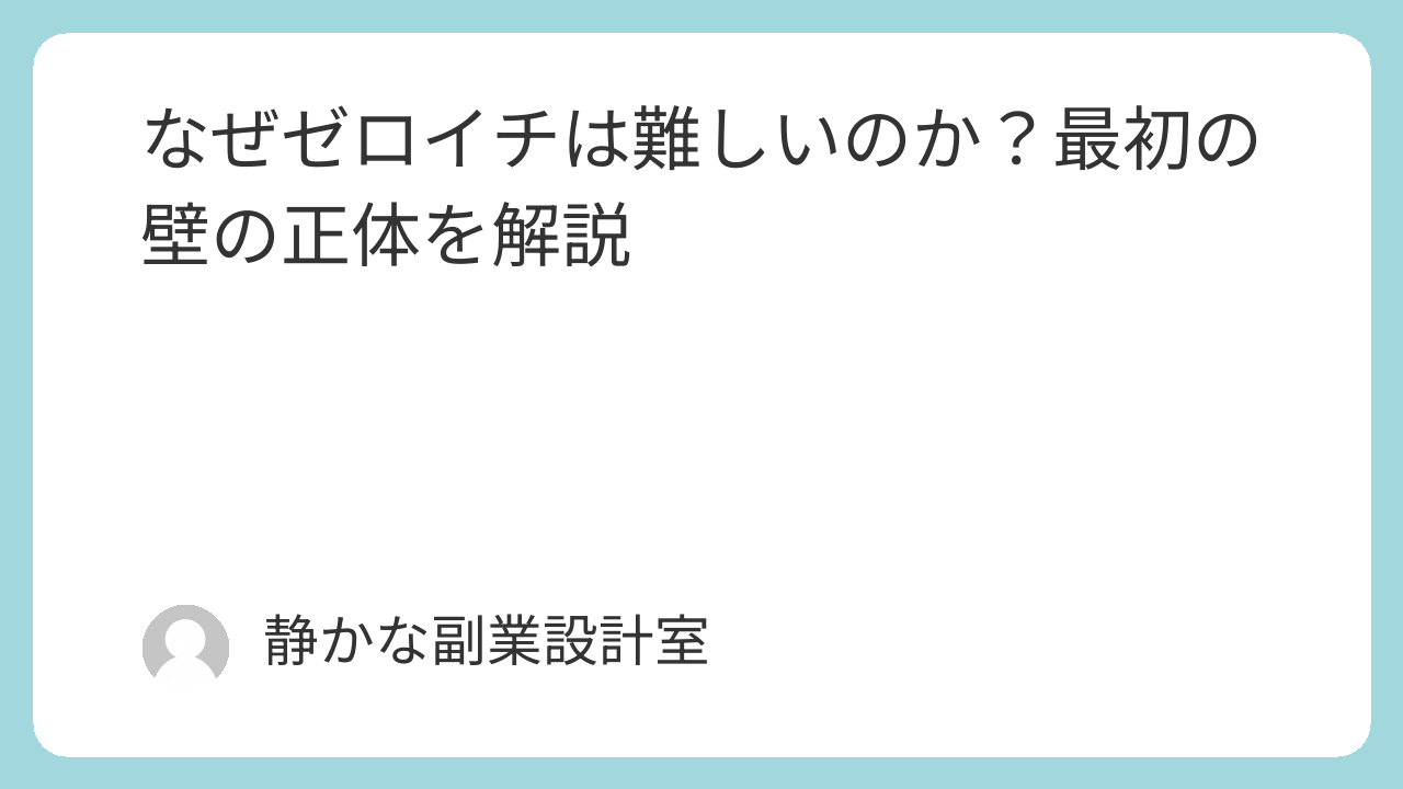 この記事では、ゼロイチが難しく感じる本当の理由と、最初の壁の正体を解説します。