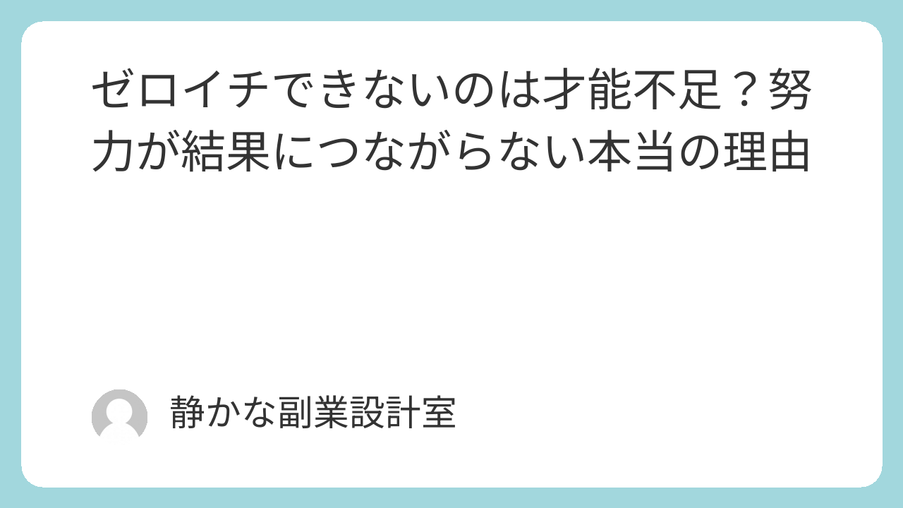 この記事では、「才能の問題」に見えてしまう原因と、ゼロイチの本当の仕組みを解説します。