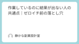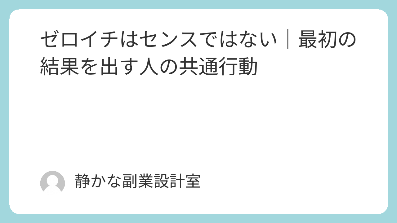 しかしゼロイチの段階では、成果の差はセンスではなく、行動の積み重ね方の違いによって生まれることがほとんどです。