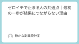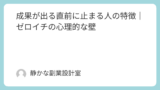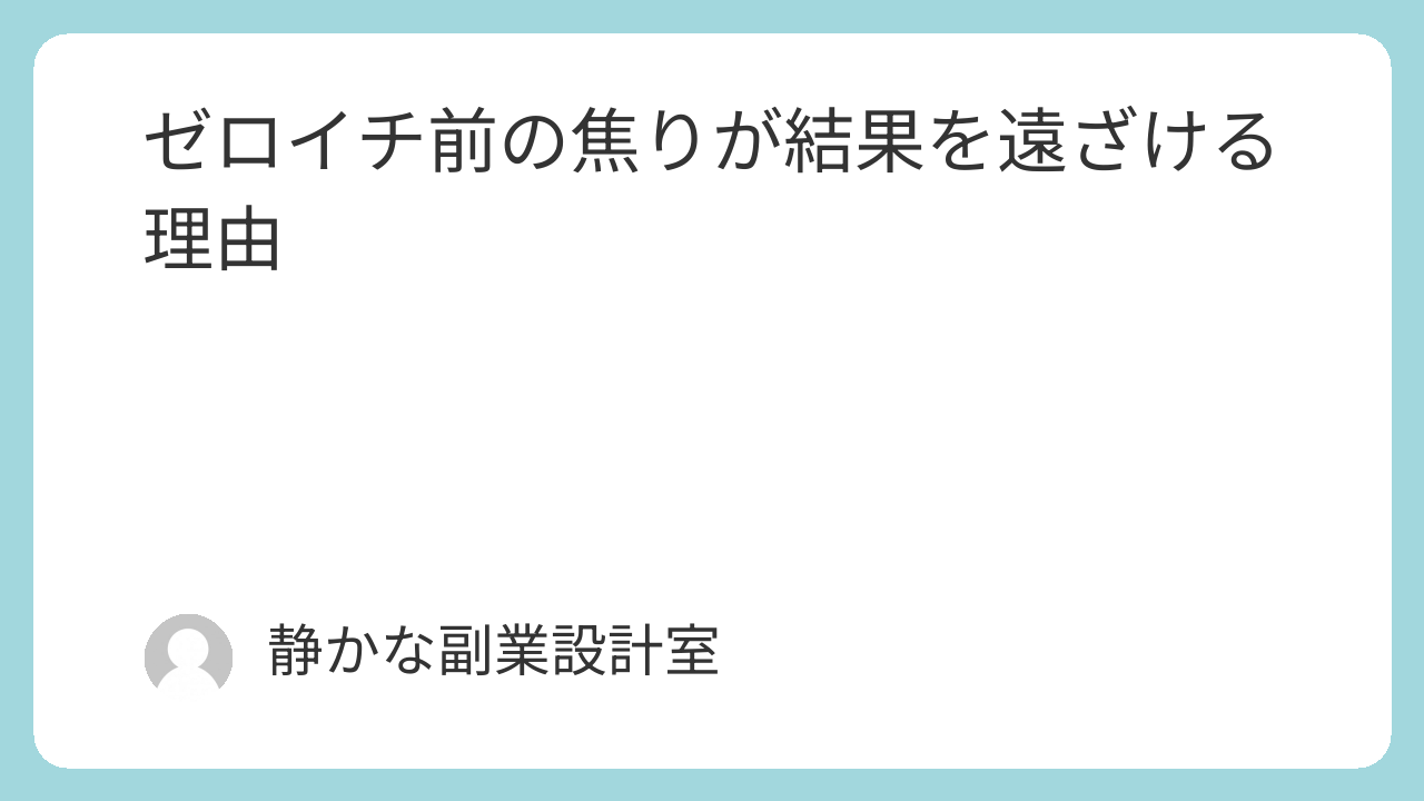 しかしゼロイチ前の焦りは、努力を増やすのではなく、結果を遠ざける行動につながることがあります。