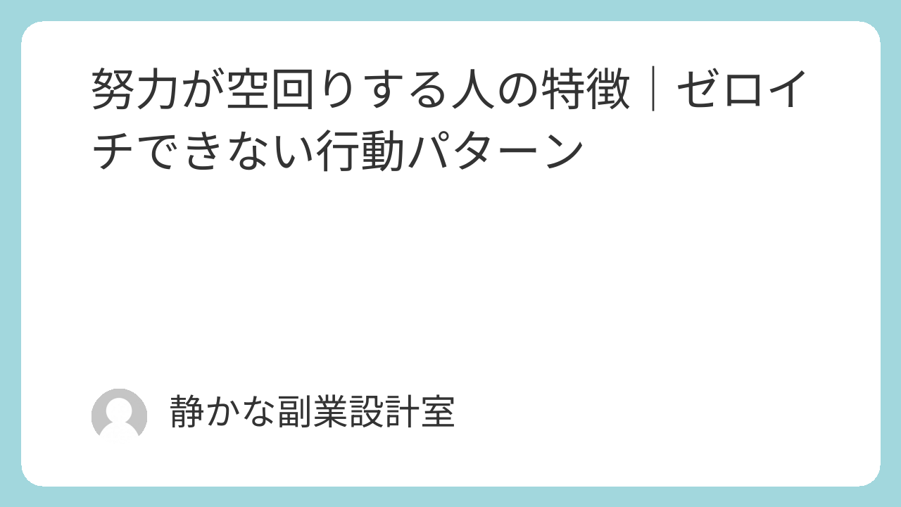しかし、ゼロイチの段階では、努力の量よりも、行動のパターンによって結果が変わることが少なくありません。