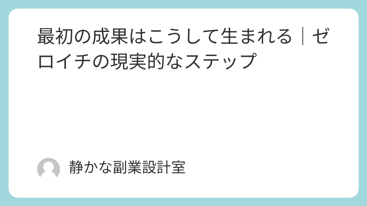 最初の成果はこうして生まれる|ゼロイチの現実的なステップ
