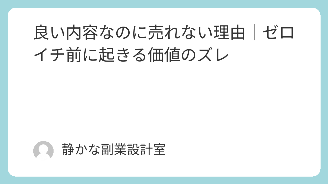 この記事では、良い内容なのに売れない理由と、ゼロイチに必要な視点を解説します。