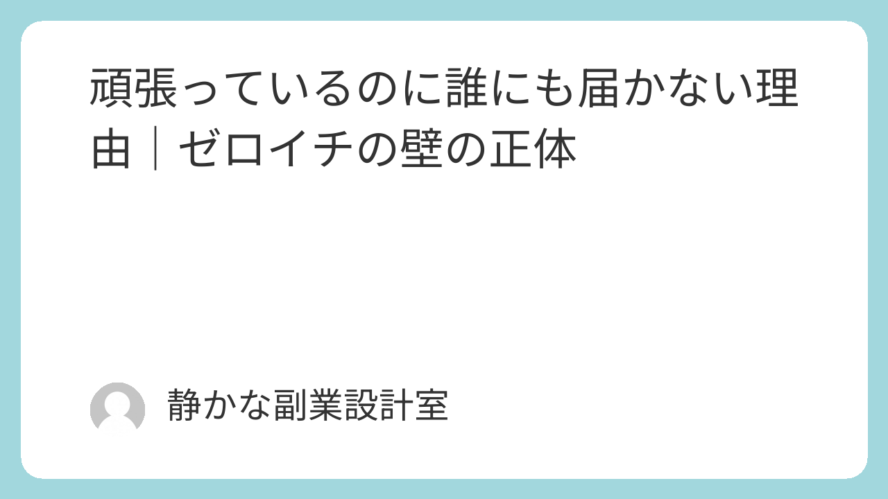 この記事では、誰にも届かない理由と、ゼロイチで最初に越えるべき壁の正体を解説します。