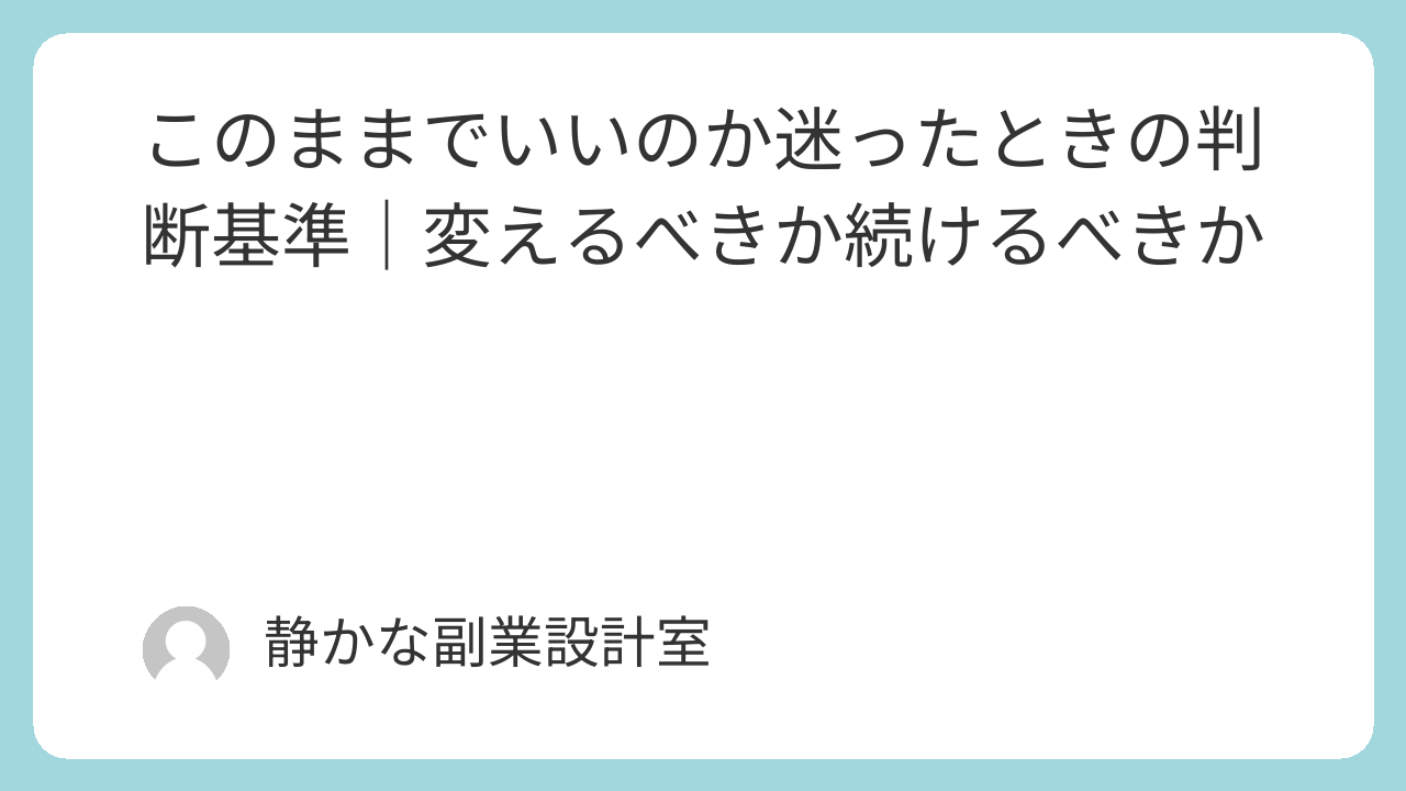 この記事では、変えるべきか続けるべきか迷ったときの考え方と、後悔しない判断のための基準を解説します。