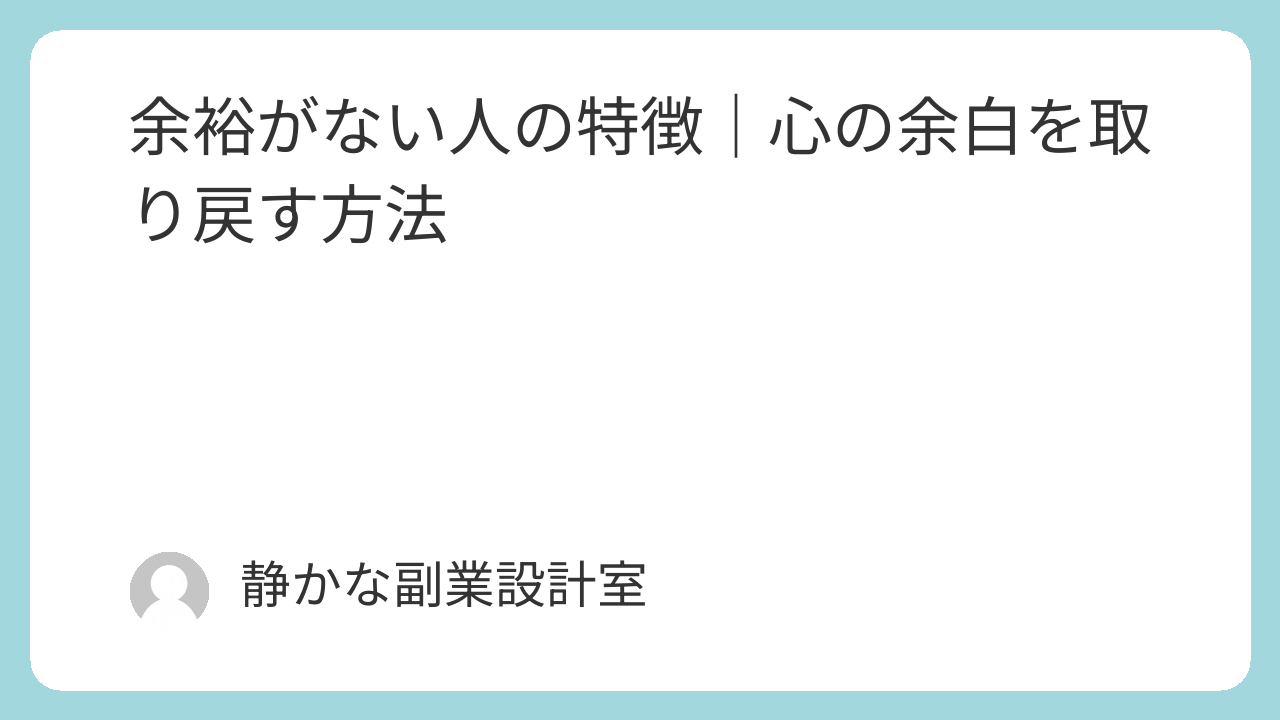 この記事では、余裕がなくなる理由と、心の余白を取り戻すための考え方を解説します。