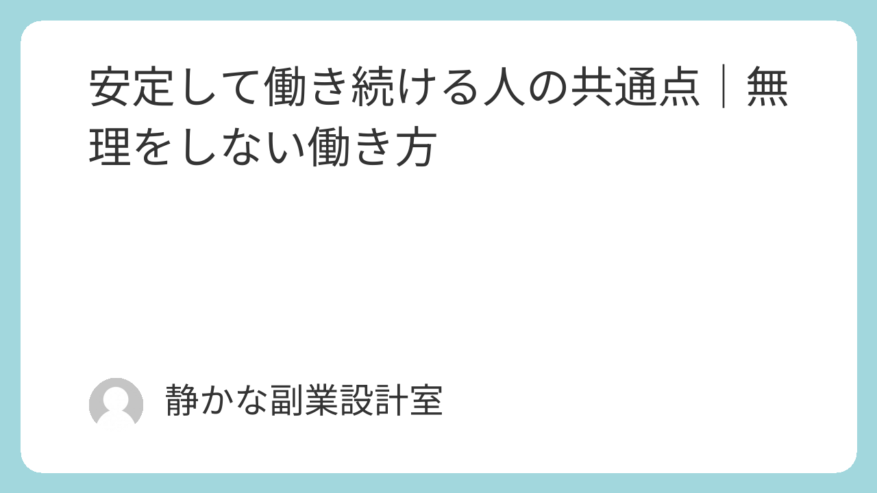 この記事では、安定して働ける人の特徴と、消耗を防ぐための考え方を解説します。